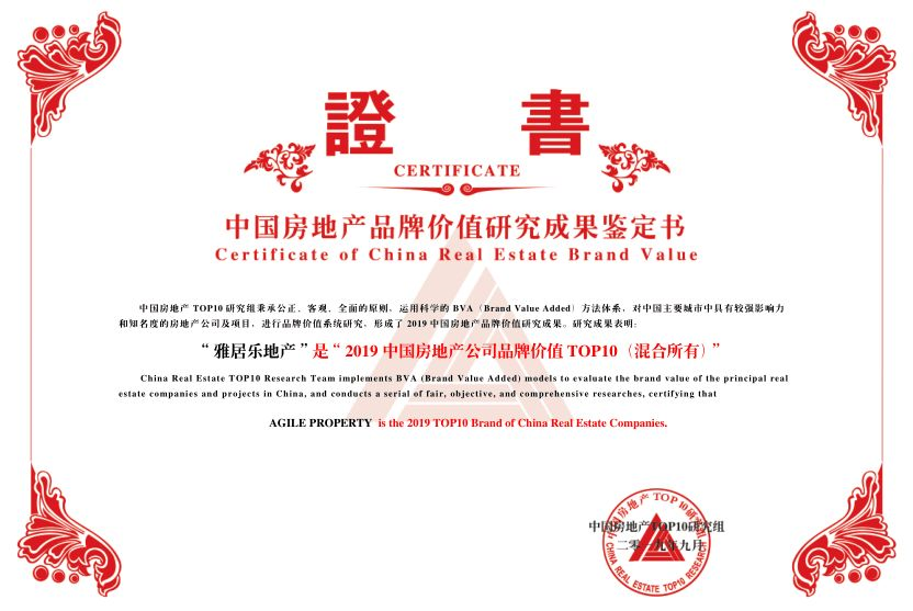 在战略、产品和服务方面的不懈努力,使雅居乐地产品牌再度获得行业认可。