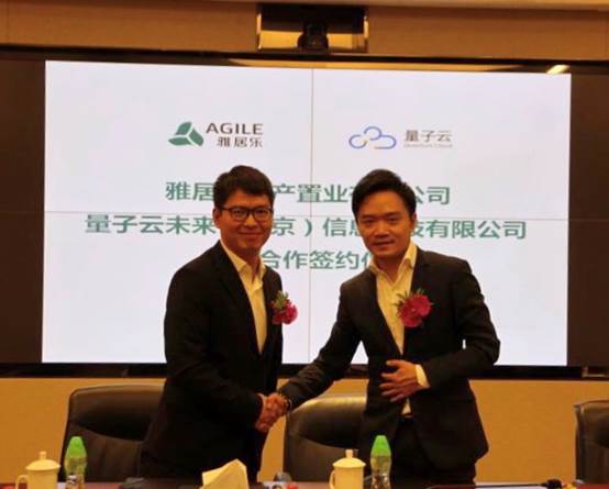 雅居乐地产集团副总裁兼产业地产负责人阮家声(右)与量子云未来(北京)信息科技有限公司CEO李甫代表签约